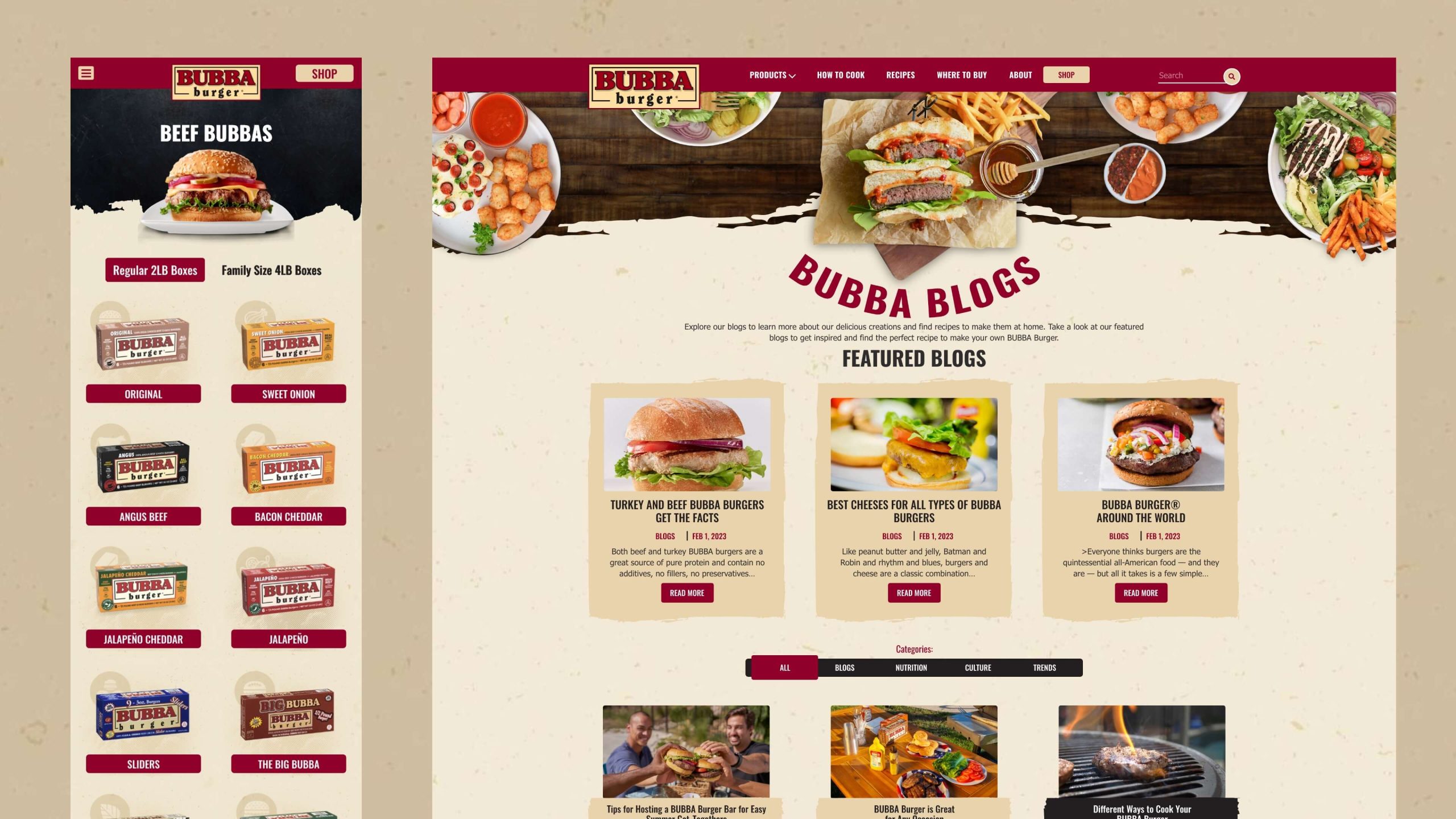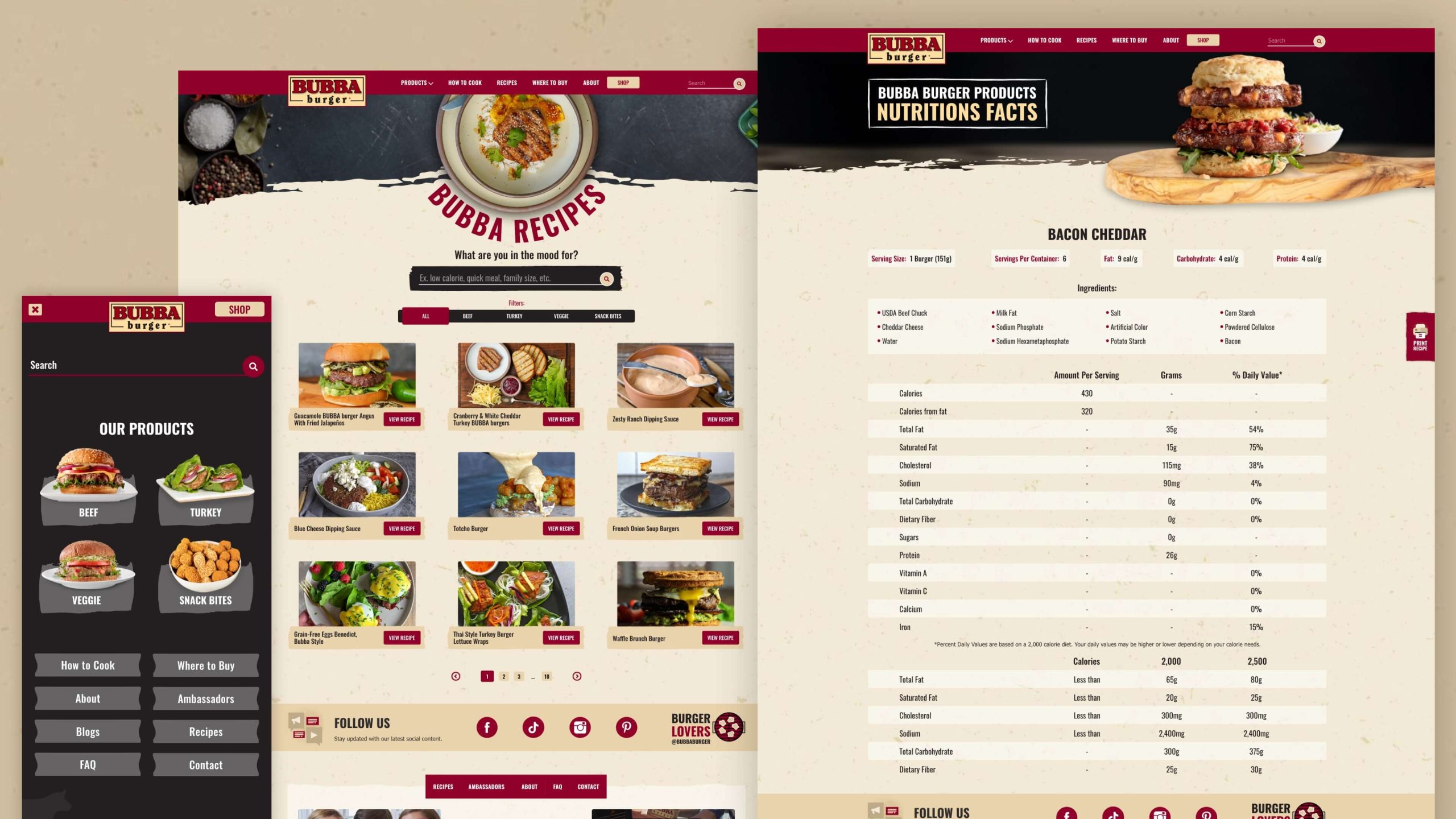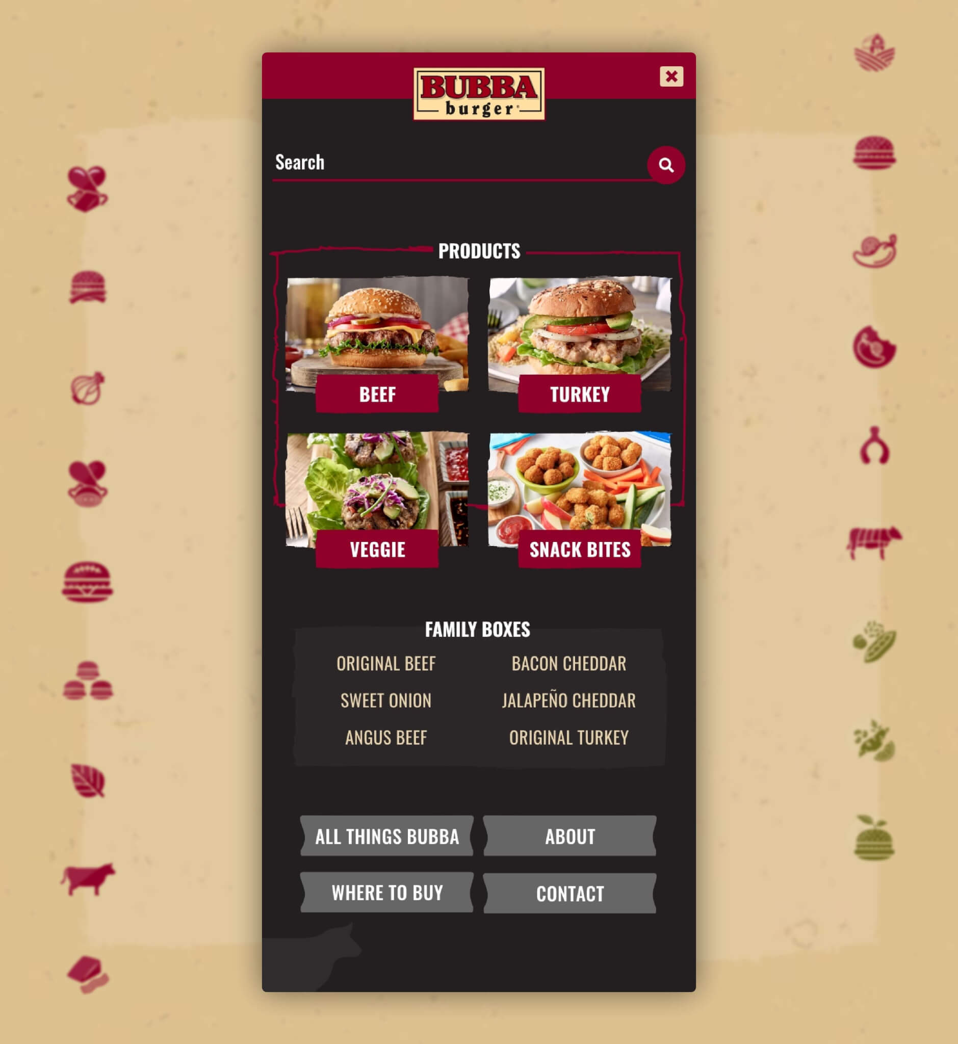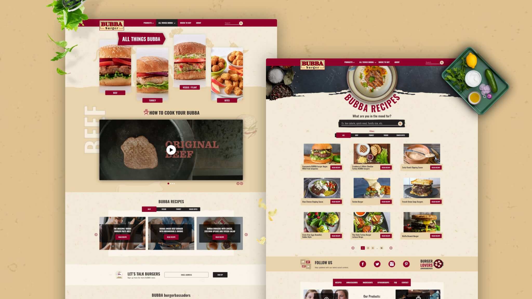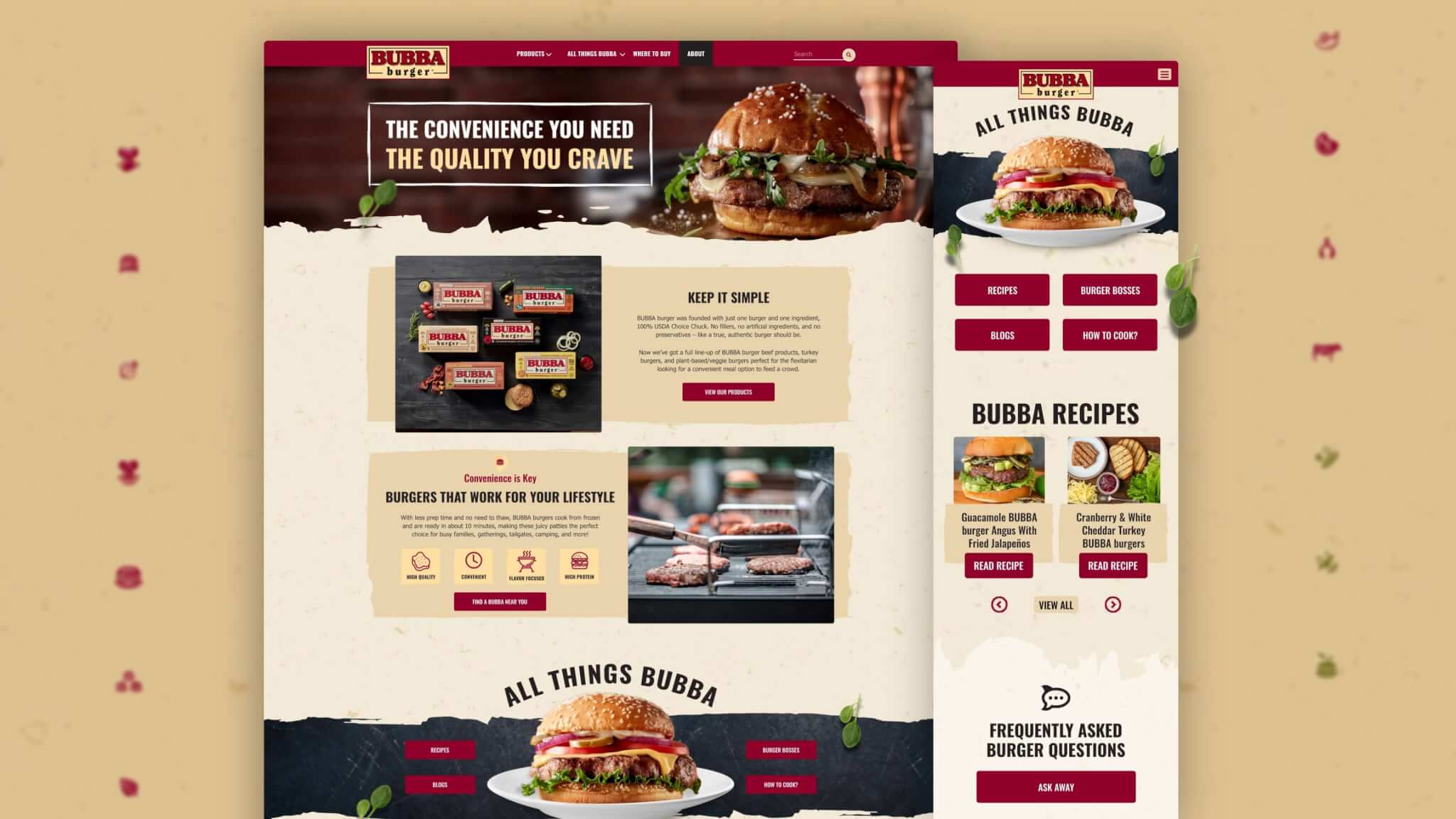 For BUBBA Burger’s website redesign, I crafted a cohesive and visually engaging style guide that reflects the brand’s personality. This included designing modern layouts, selecting a bold and inviting color palette, and creating custom graphic elements to enhance the overall aesthetic and align with BUBBA Burger’s identity.