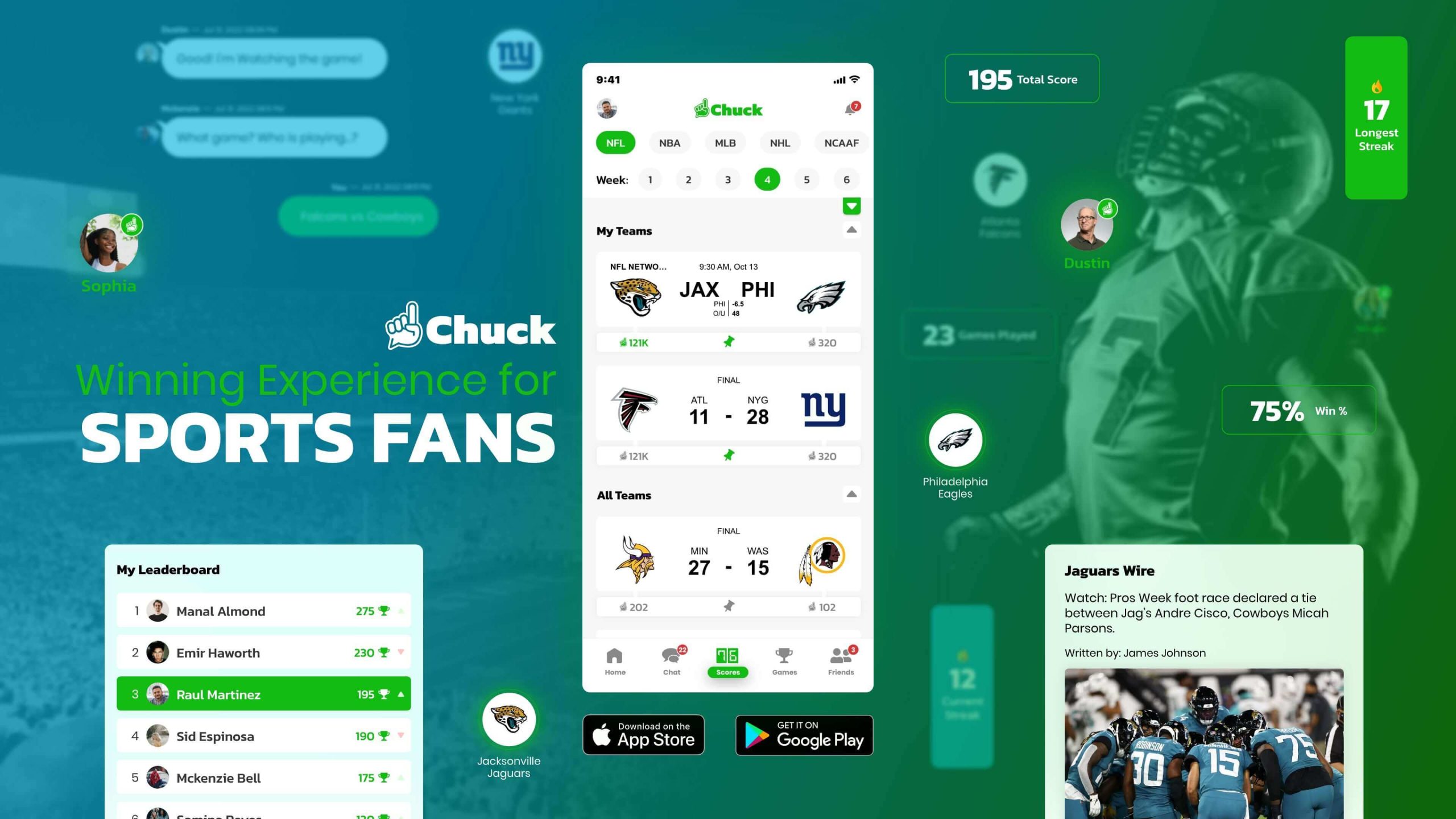 The redesign significantly enhanced the Chuck app’s user experience, leading to increased user engagement through features like personalized feeds, real-time sports news, games, trivia, and leaderboards. The improved UI/UX has made it easier for users to stay connected to their favorite sports. This successful project has fostered a strong working relationship with David, Chuck’s CEO, leading to collaborations on subsequent projects such as The Starting 5, The Last Out, and Chuckle Games.