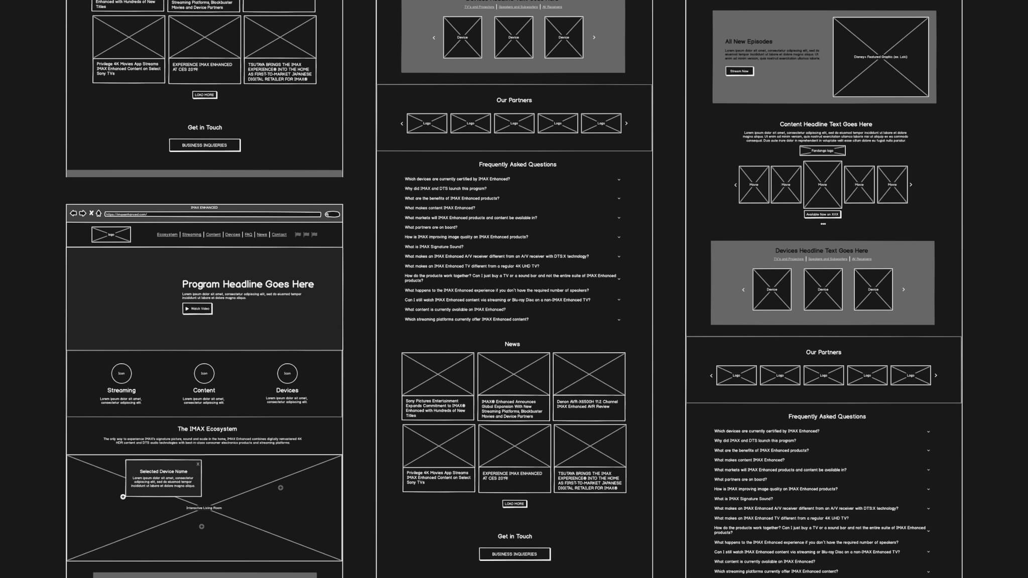 For the IMAX Enhanced project, I began helping the 5ivecanons team by developing comprehensive custom wireframes to map the entire user journey. Then I designed the whole immersive web user experience, focusing on clear navigation, intuitive layouts, and modular and interactive sections. I also crafted a detailed style guide, incorporating vibrant typography, button states, and a dynamic color palette to reflect IMAX’s premium brand identity.