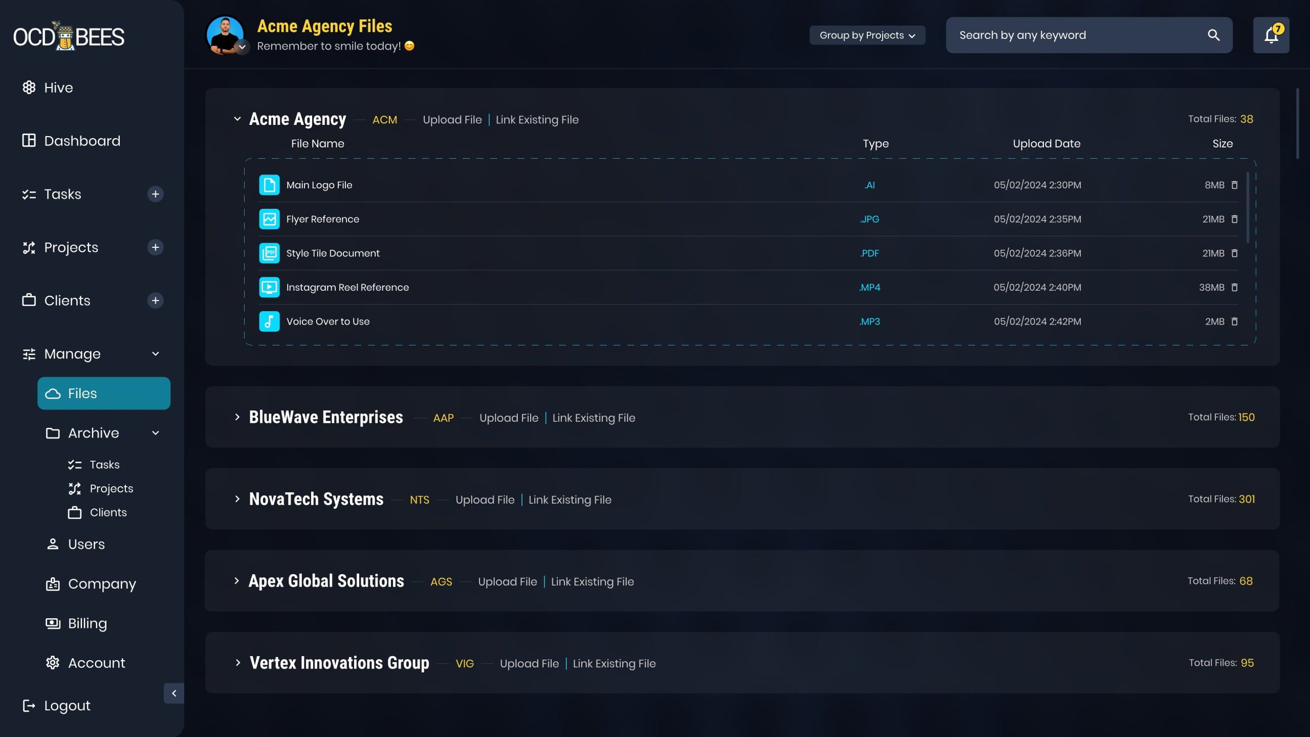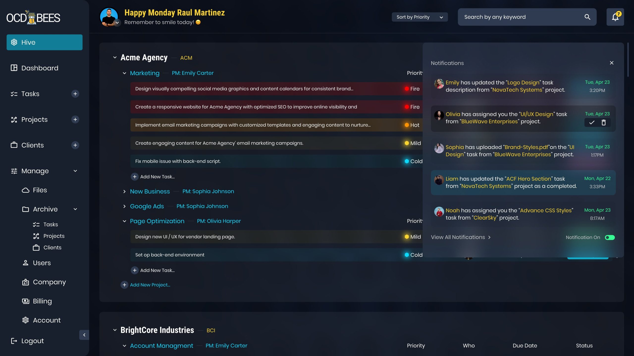 As a Senior UI/UX Designer at 5ivecanons, I designed the whole user-friendly interface for OCDBees, a project management SaaS tool for creative agencies. The goal was to create an intuitive platform where users could efficiently manage tasks, with color psychology integrated to highlight task priorities. The result is a simple yet effective tool that enhances productivity and streamlines workflows.