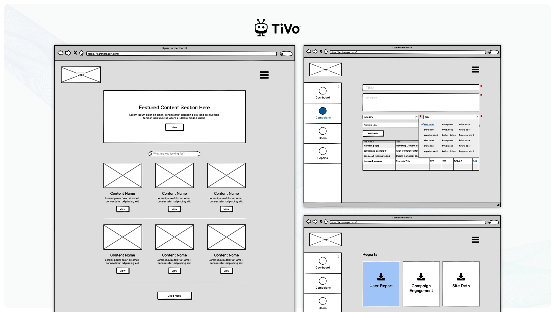 Before touching high-fidelity visuals, I mapped out the complex workflows required for bulk media categorization, campaign creation, and partner onboarding. I developed comprehensive wireframes to establish a clean information architecture, significantly reducing cognitive load for administrators managing large datasets.
