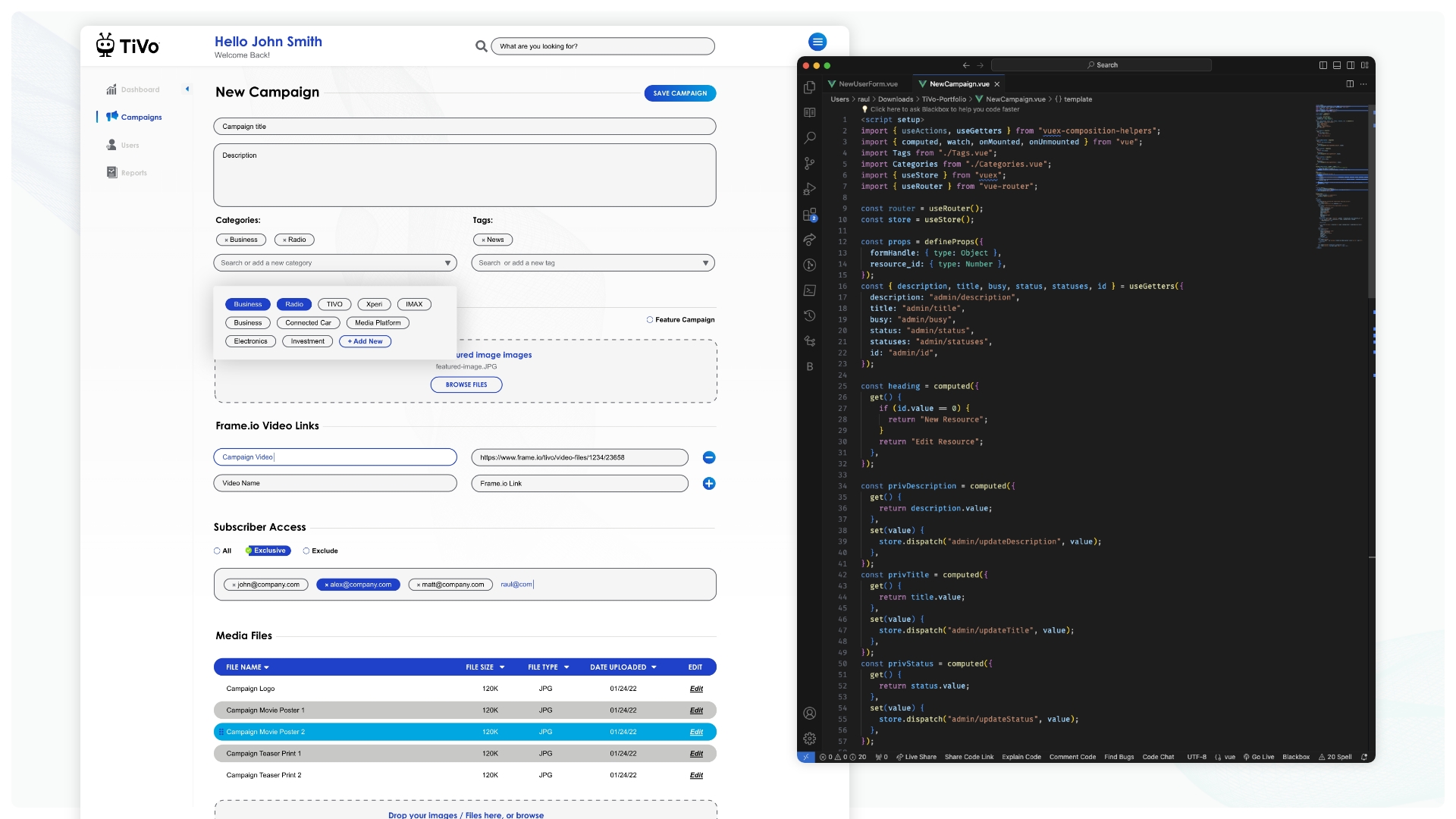 Security was key for TiVo’s unreleased media. I designed a secure, frictionless login experience alongside highly intuitive user-management interfaces. This allowed administrators to easily assign, modify, and revoke granular access permissions, ensuring partners only interacted with authorized content.